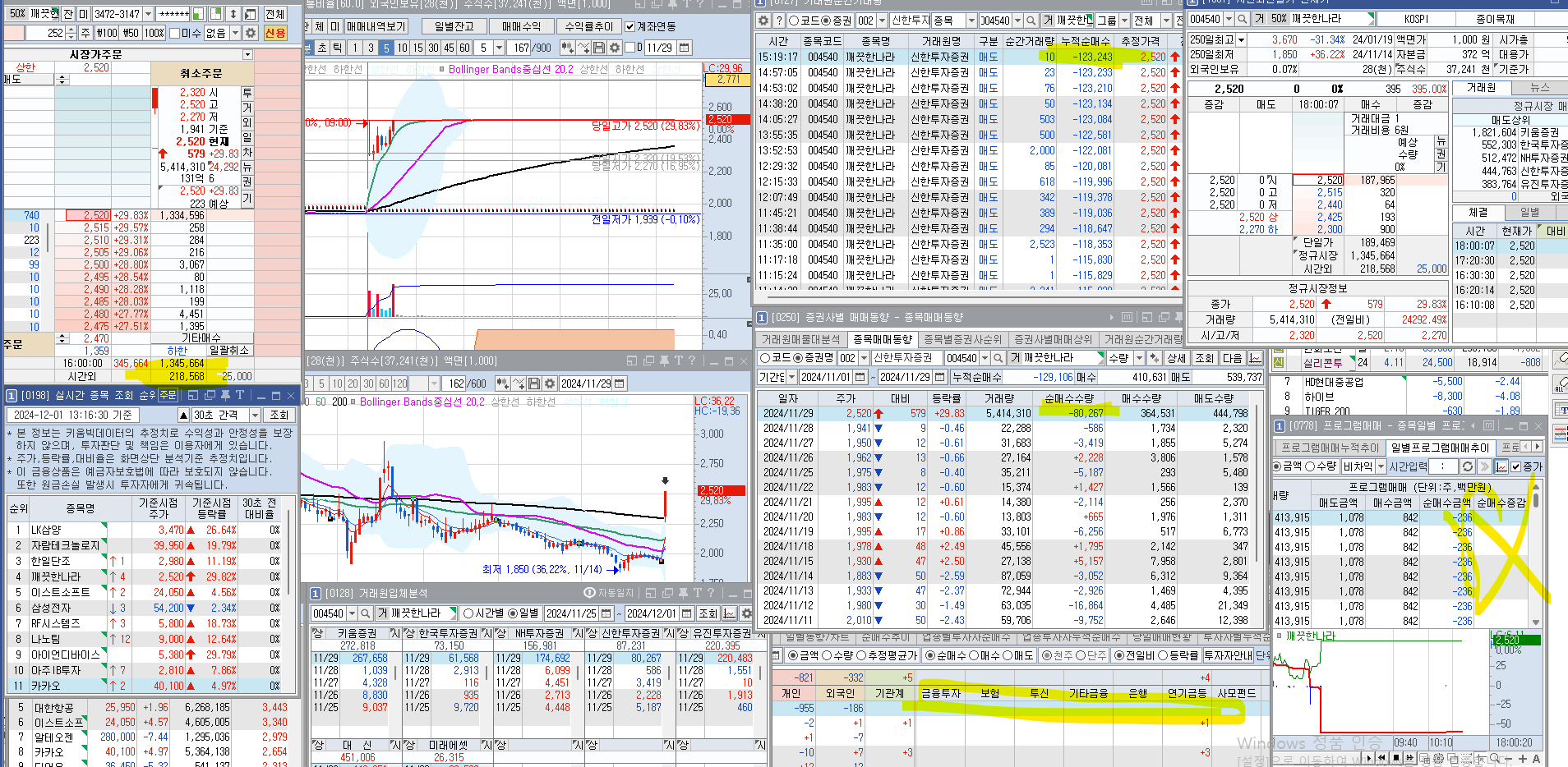 1. 장대양봉기준 거래원 매수 들어옴. 미래에셋, 신한은행, 키움증권 , 특히 신한증권 급격히 증가