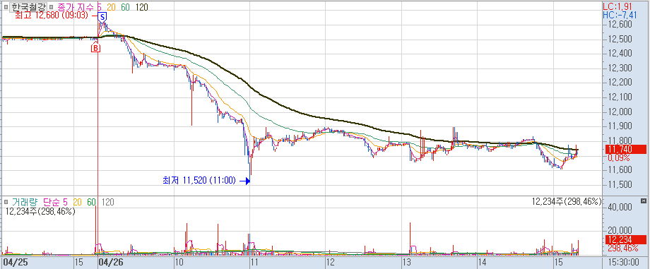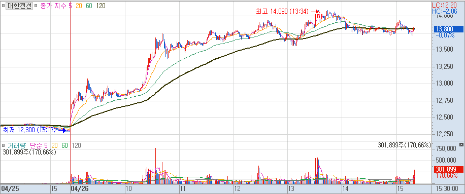 매수근거 : 전선주들이 모두 상승하고, 대한전선의 매매대금이 터기기에 한번 슈팅이 나올 것으로 보았는데, 매수후에 질질 내려가는 모양새다.
