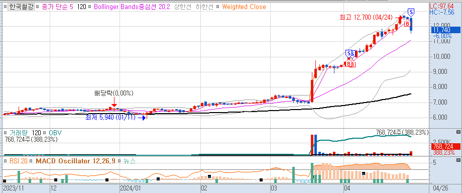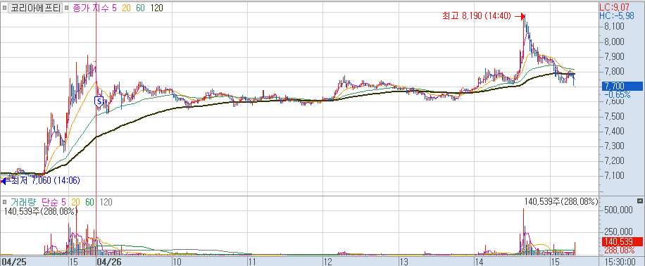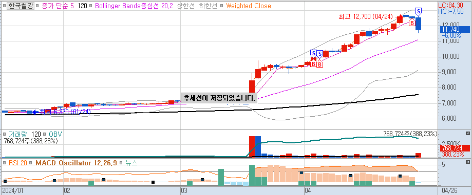 초반부터 상승하기에 며칠동안 계속 전강,후약 모양이여서 약간만 팔았다. 그러나 너무도 많이 올랐다. 올랐을 때, 팔지 못한 것이 잘못되었다. 오를 때 팔고, 종가에 살걸... 이라는 껄무새가 되었다.