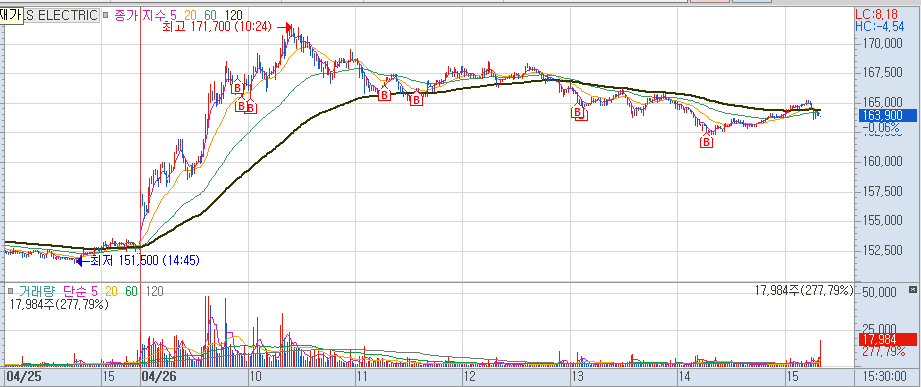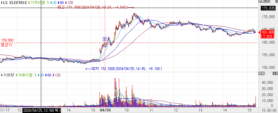 매수근거 : 구리값 상승으로 전선주들이 상승하기에 확실히 상승 기조다 라고 매수를 했는데, 오후부터 계속 하락하기에