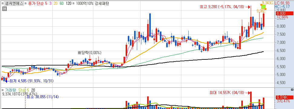 중간에 120일선에도 닫지 않고, 강하게 상승하였다.