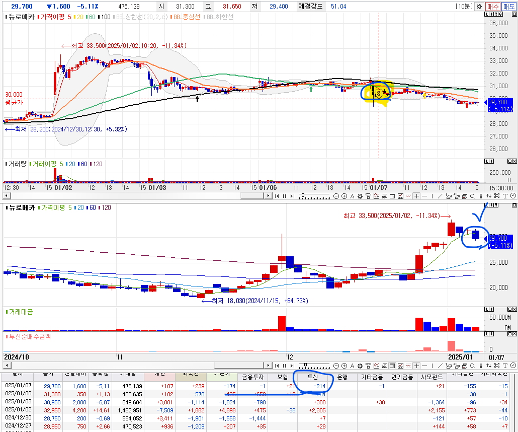 1. 손절했다. 아... 잘못된 판단... 마녀공장 수급이 왜 이런지... 급등 갭이 생기면 1.2일은 지나서 확인해 보고 들어갔어야 했는데...