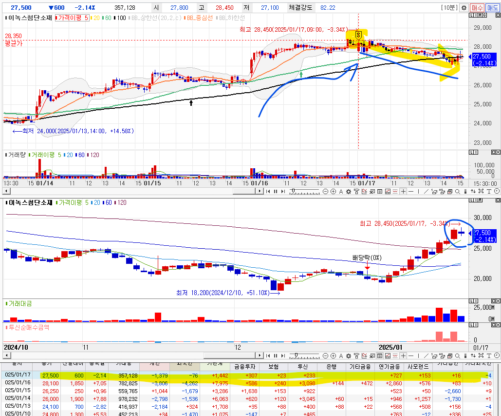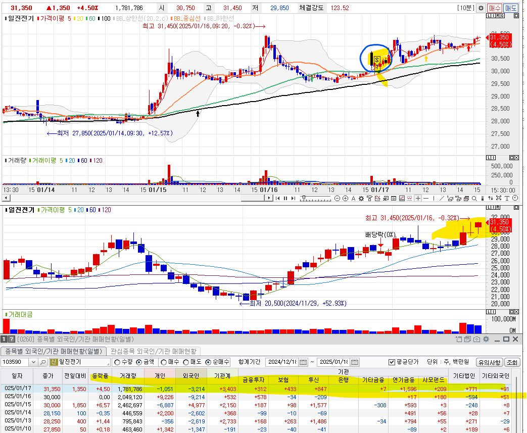 4. 수급도 엄청 많이 들어왔다. 대장주 역할을 할지 한번 봐야 겠다.