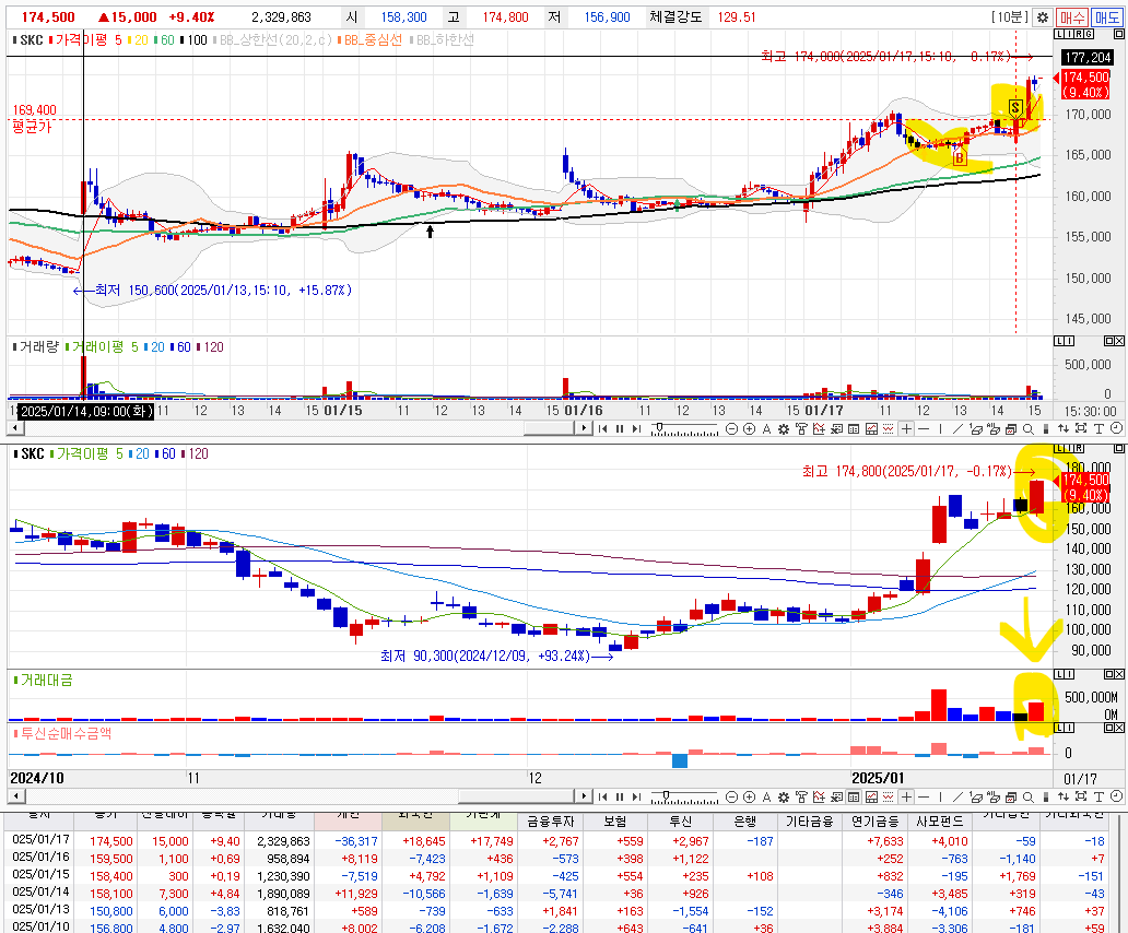 3. skc 유리기판 종목은 수급이 너무 좋다. 장기간 보유해도 좋을 것 같다.