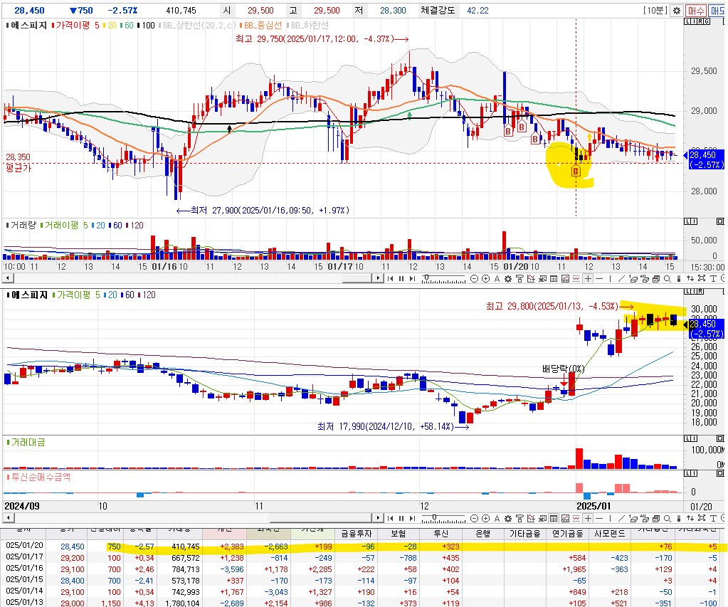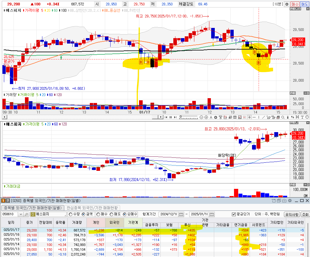 1. 로봇은 계속 상승할 수 있는 파트라고 생각하고, 에스피지를 계속 하락시에 매수를 진행했다.