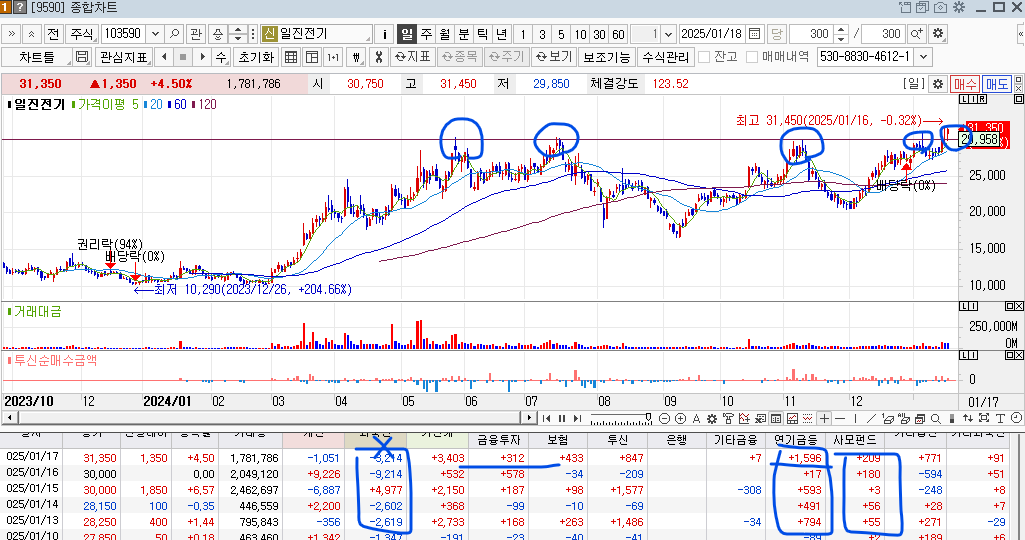 1. 매수근거 - 전력장비 강세 - 7개월동안 최고가를 4번 도52전햇다. 그 도전을 오늘 뚫고 올라갔다.