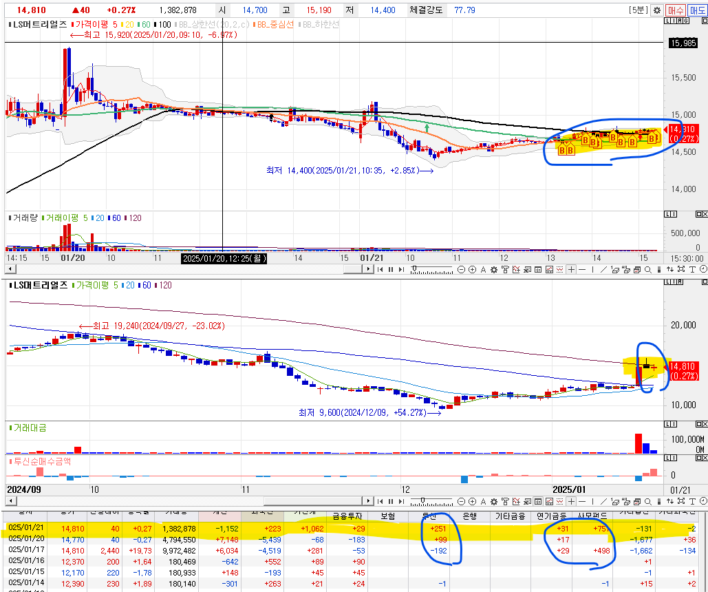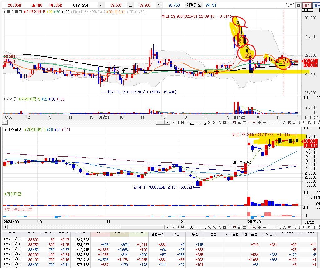 2. 하락중인데, 투신이 매수를 진행하고 있어서 이를 보고 매수하였다.
