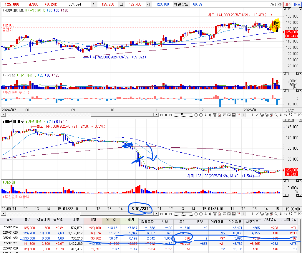 2. 매수실패원인 : 투신이 매수를 하더라도, 외국인과 다른 기관의 매도세가 더 심하면 우선 매수에 신중하자.