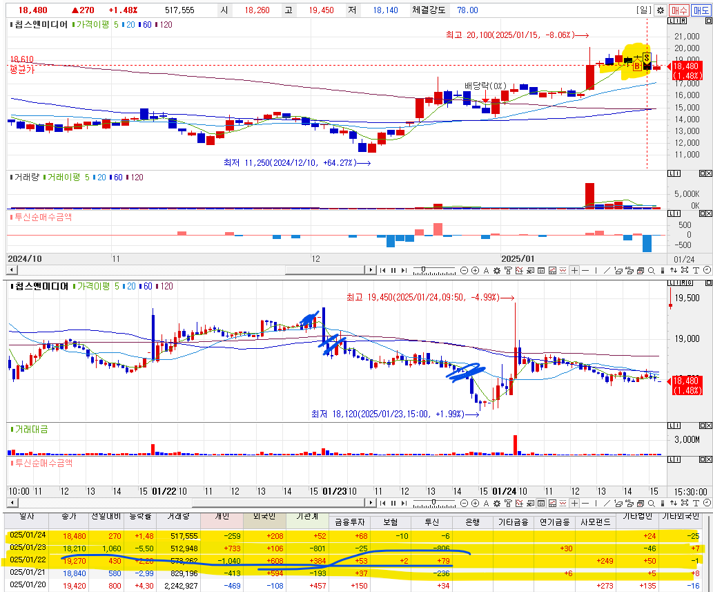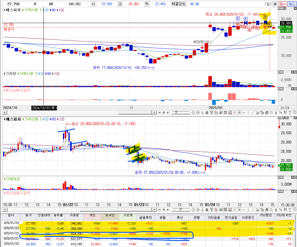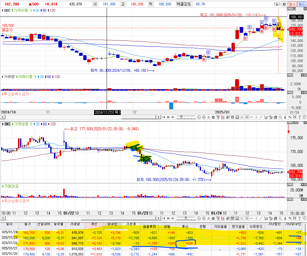 1. 매수이유 : 며칠간 지속적인 투신의 투입을 확인하였음.