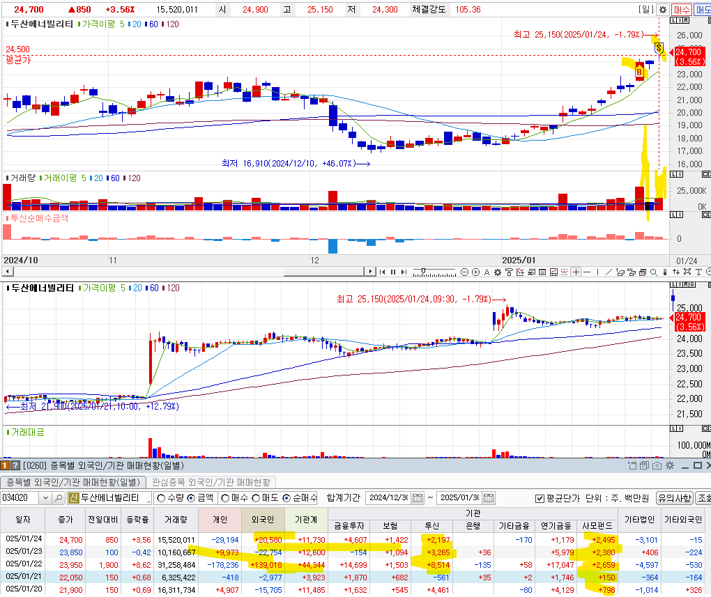 2. 해당 종목은 외국인이 매수로 받쳐주기 때문에, 괜챦은 상황이다.