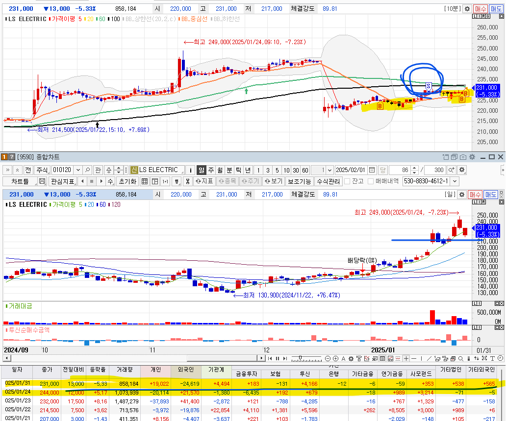 1. 매수이유 : 미국장 중국 딥시크 등장으로 AI 인프라 투자 축소 판단으로 전력기기 축소 하락