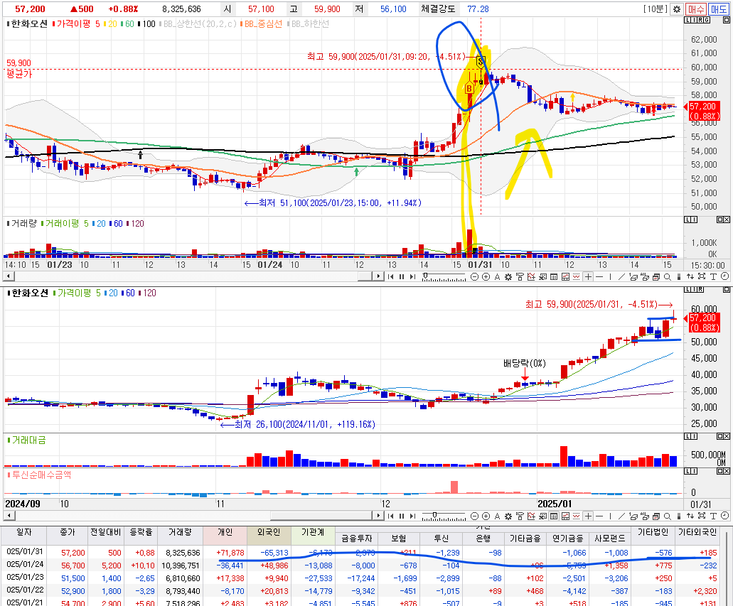 2. 매도이유 : 별로 힘이 느껴지지 않아서, 그냥 약수익으로 매도 했다. (외국인 대량 매도 진행)