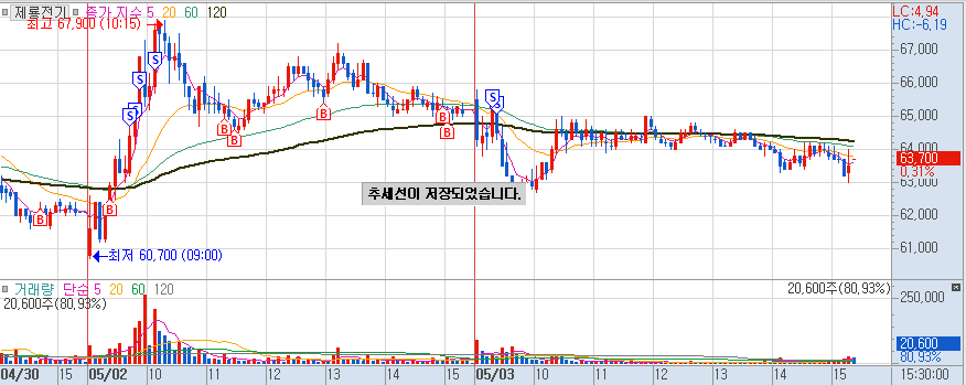 매수근거 : 오늘 매수 근거는 모건스탠리 / 프로그램 매수가 지속적으로 들어오는데, 질질 내려가기에 매수를 진행했다.