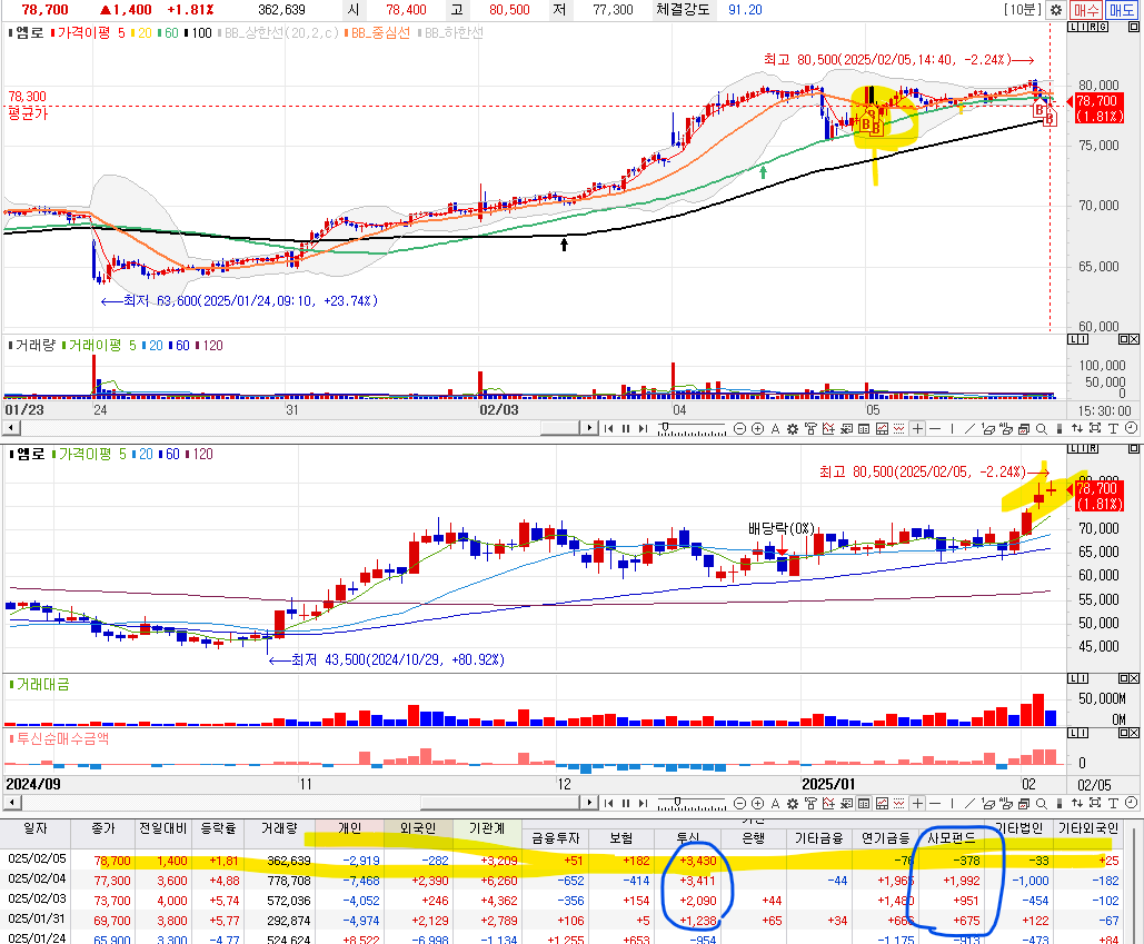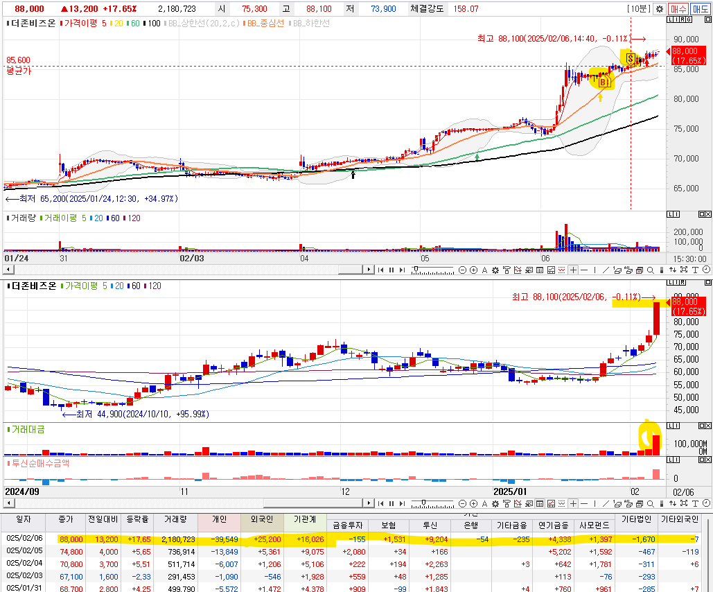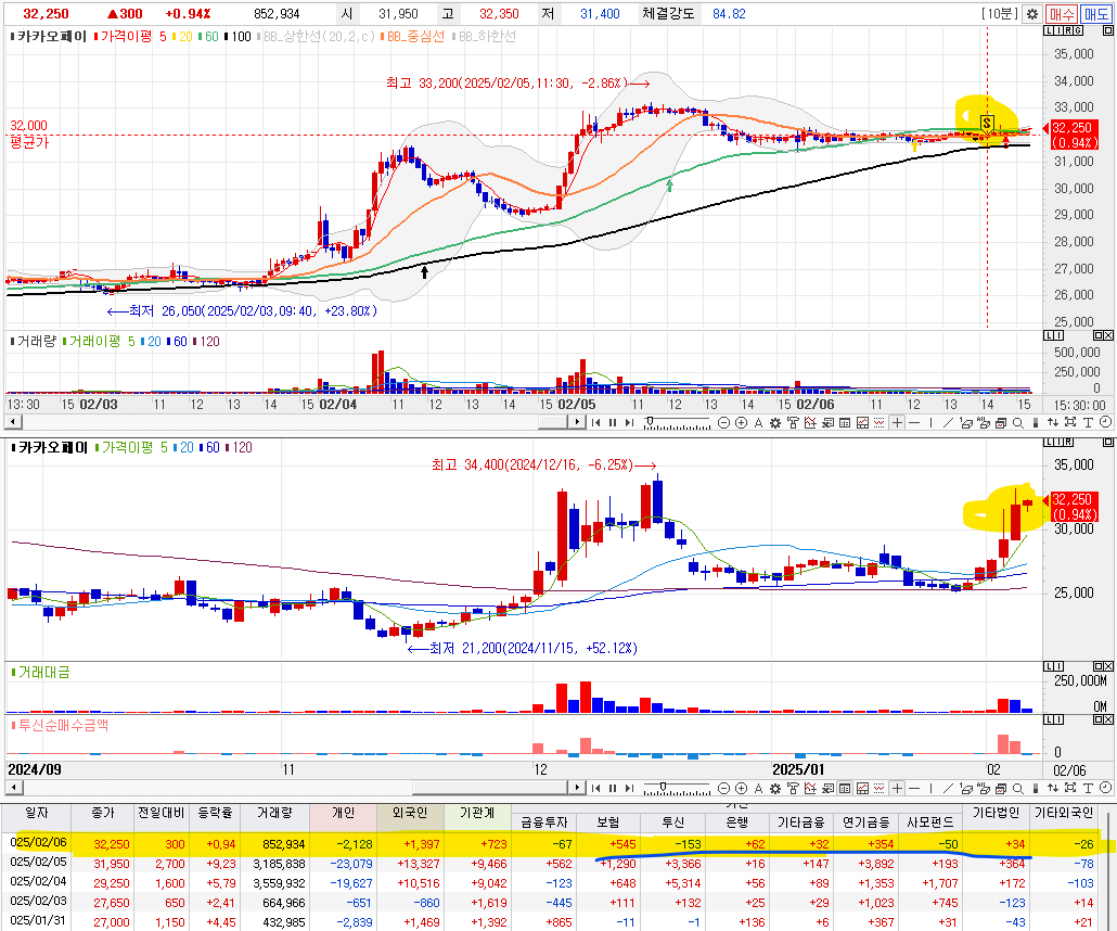 1. 카카오와 함께 상승 . 투신의 매수로 상승