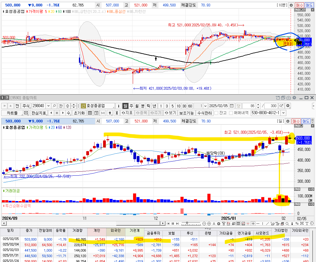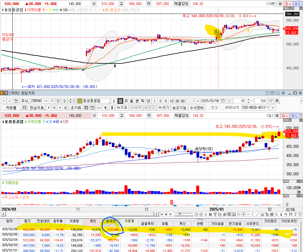 3. 투신은 매수 -> 매도 종료, 외국인도 매수 --> 매도 종료..