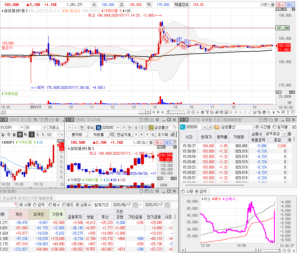 앞으로 이런 뉴스로 매수는 하지 않을 것을 몇번을 다짐했는데.. 그래도 삼성물산은 그동안, 투신, 연기금이 지속적으로 매수를 하기에 떨어지진 않겠지라고 생각했다. 그래 떨어진 것이 아닌, 내가 너무 높은 곳에서 잡았다.