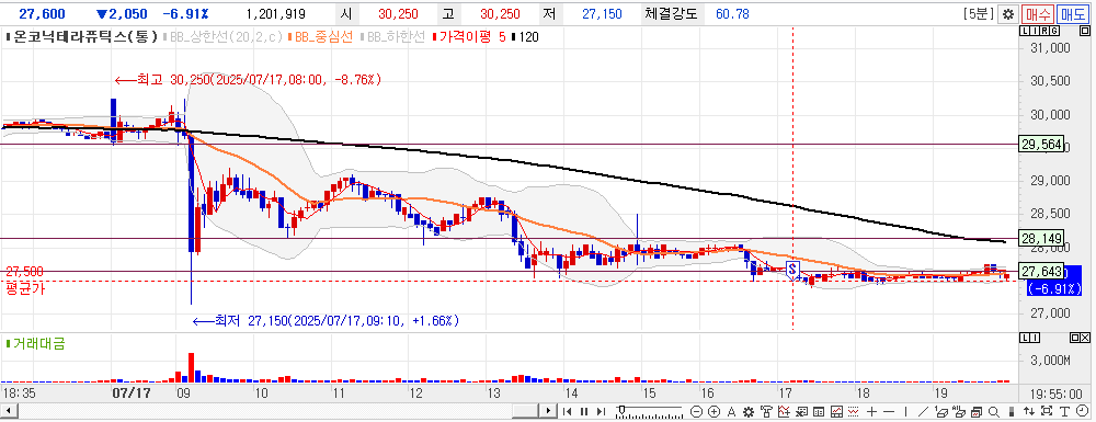 아무튼. 다시는 이 종목은 안볼란다. 짜증난다... 원래. 며칠전에 큰 수급과 급 상승하여. 이를 수익으로 바꾸기 위해 한두번 더 상승 나올 것이라 생각했는데. 너무 흔든다.