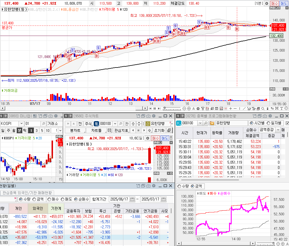 난 약간의 수익을 챙겼다. 우선 프로그램이 원웨이 방향으로 상승했지만, 쫄보여서 많이 사지 못하다가 장 막판에 샀다가 물리긴 했다. 중간 사팔사팔하면서 이익을 남기긴 했다.