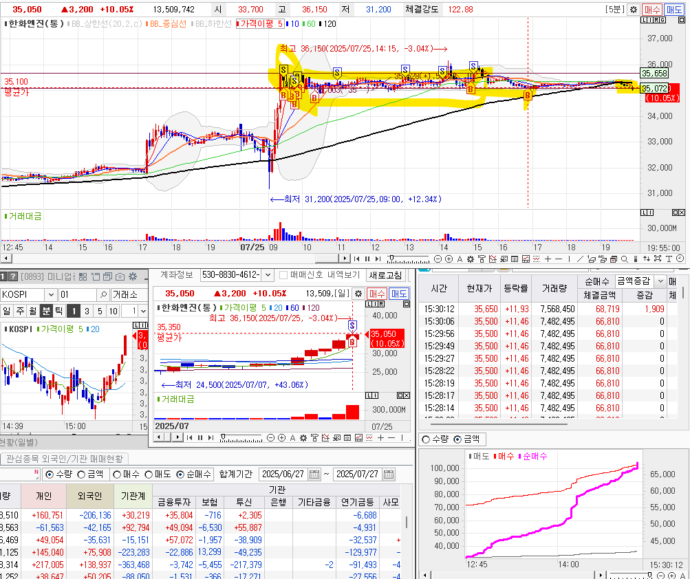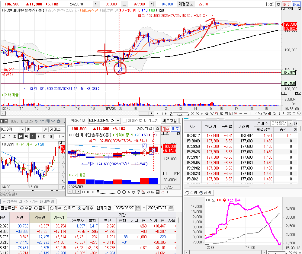 아. 젠장.. 그 매도가 가장 최저점이였어. 이후 조선 관련주의 강세로 상승하기 시작했다.