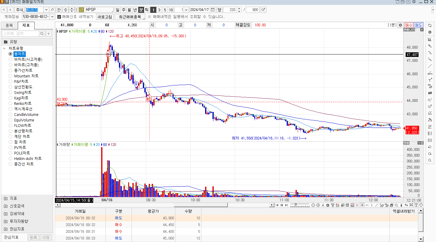 매매일지-스스로 24-04-16 살아보자구요 2024. 4. 17. 08:58 매수 / 매도 HPSP (-4%) 지속적으로 하락하고 120일 이평선에 근접하여 주의깊게 보고 있었는데, 대주주 (펀딩업체)에서 매각을 진행한다고 하여 , 매수를 진행 (3프로 TV에서도 언급함 )하였다. 하지만, 질질내려오는 와중에, 공시가 나와서 내용을 확인해 보니, 진행상황없는 내용이였다. 정말. 장난하는 건지.. 를 진행한다고 하여 매도를 진행하였지만, 공유하기 게시글 관리 새롭게 시작하자. 주식 '매매일지-스스로' 카테고리의 다른 글 24-04-18 (0) 2024.04.19 24-04-17 (0) 2024.04.17 24-04-14 (0) 2024.04.14 '매매일지-스스로' Related Articles 24-04-18 24-04-17 24-04-14