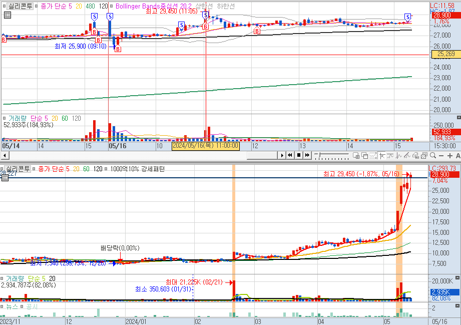 내가 생각하는 모습은 내일 오전장은 빌빌거리다가 약 10%가량까지 상승하다가 5%정도에서 마감하는 모습을 그려본다.