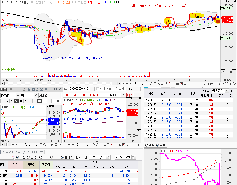 그래서 아침에 삼성전자가 밀리지 않아서, 삼성전자의 장비주인 이노테크닉스를 매수해서 약간의 수익을 남겼다.