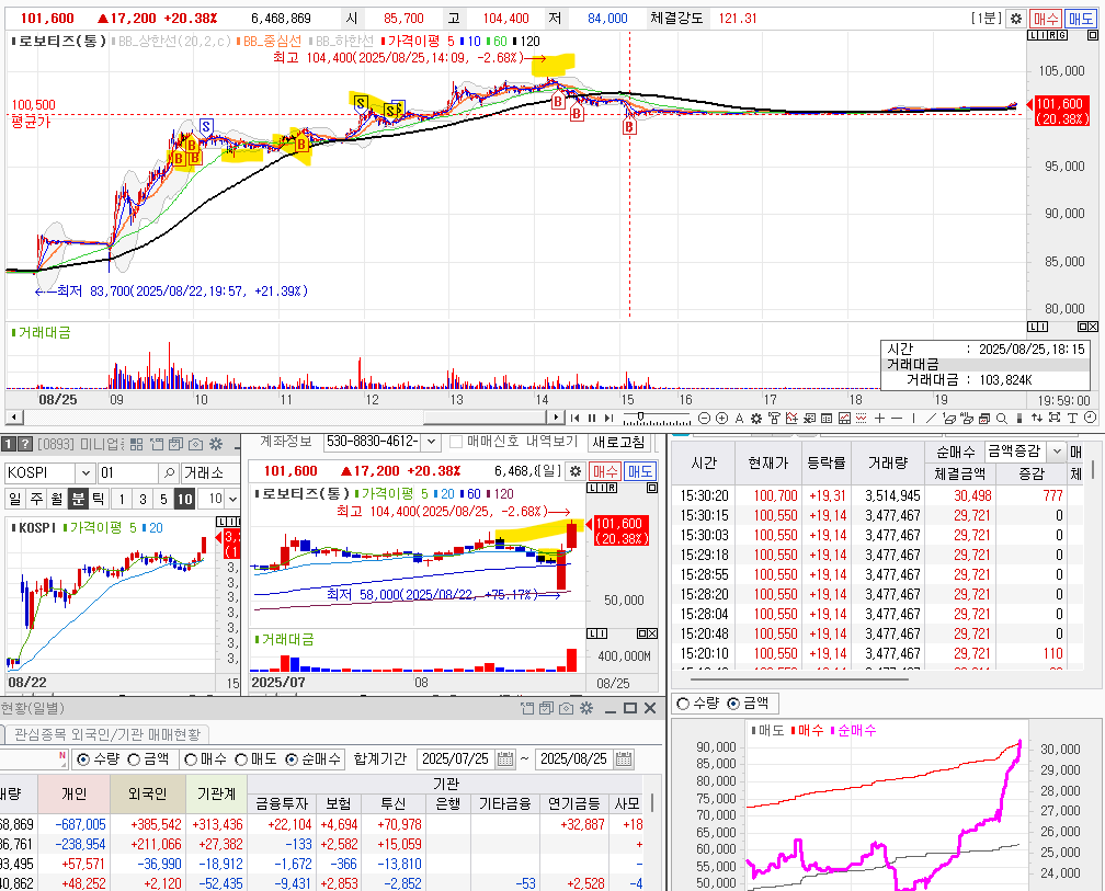 매수이유는 일봉상의 위치가 너무 좋다고 생각했고, 수급도 급등하였을 때, 수급이 빠지지 않아서 이다.