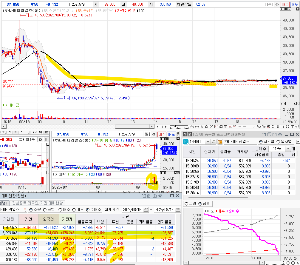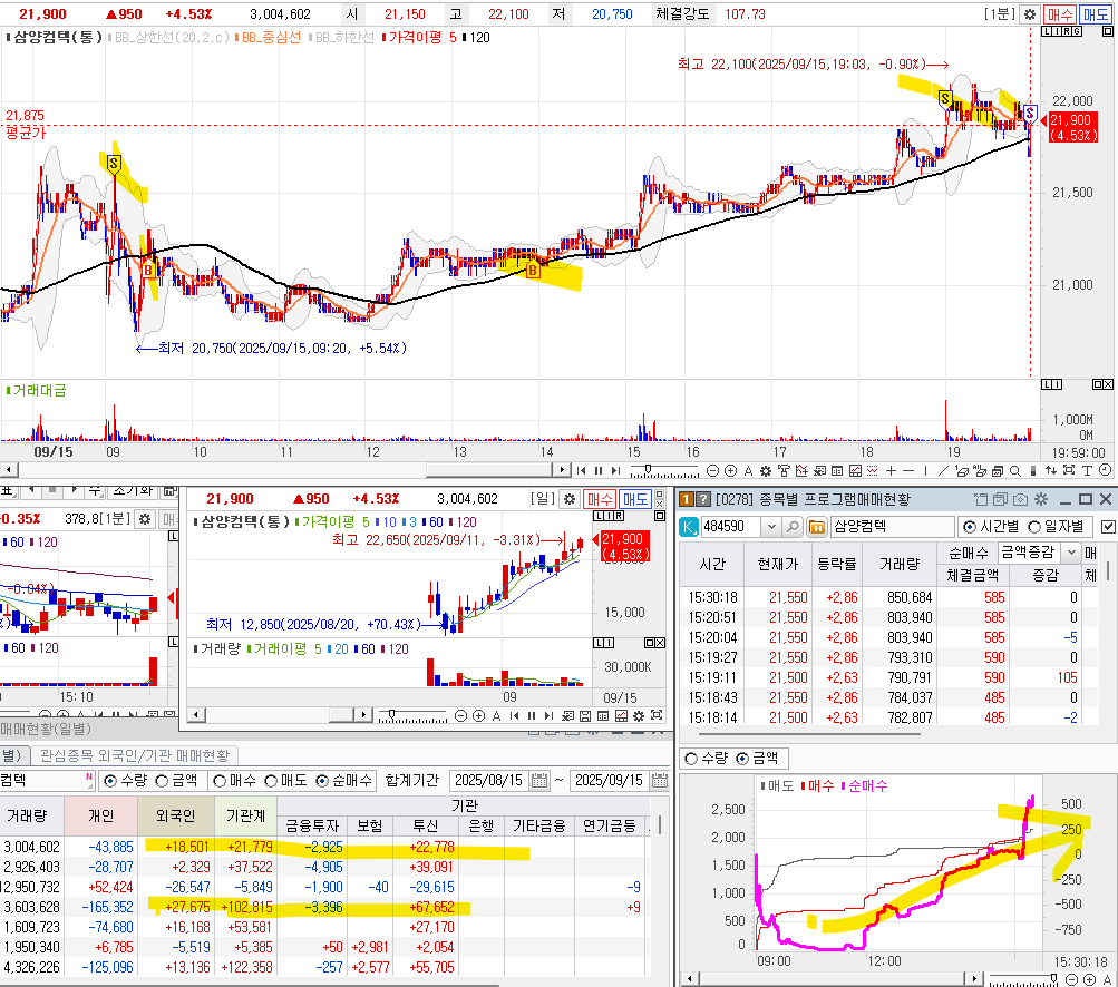 오후까지 프로그램이 하락하더니, 오후에 받쳐주는 모습을 계속 보이기에 .. 오호 기관이 들어오는 구나.. 이런 생각을 했다.