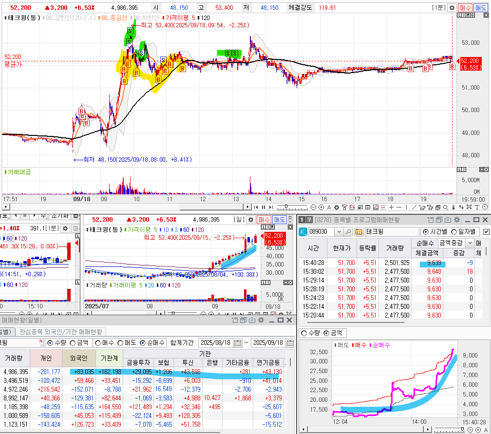 그 중에 최근 거래량이 떠지면서, 수급이 들어왔고, 어제 매수후 매도한 다음에 오늘 다시 상승하기에 매수한 테크윙을 재매수했다.