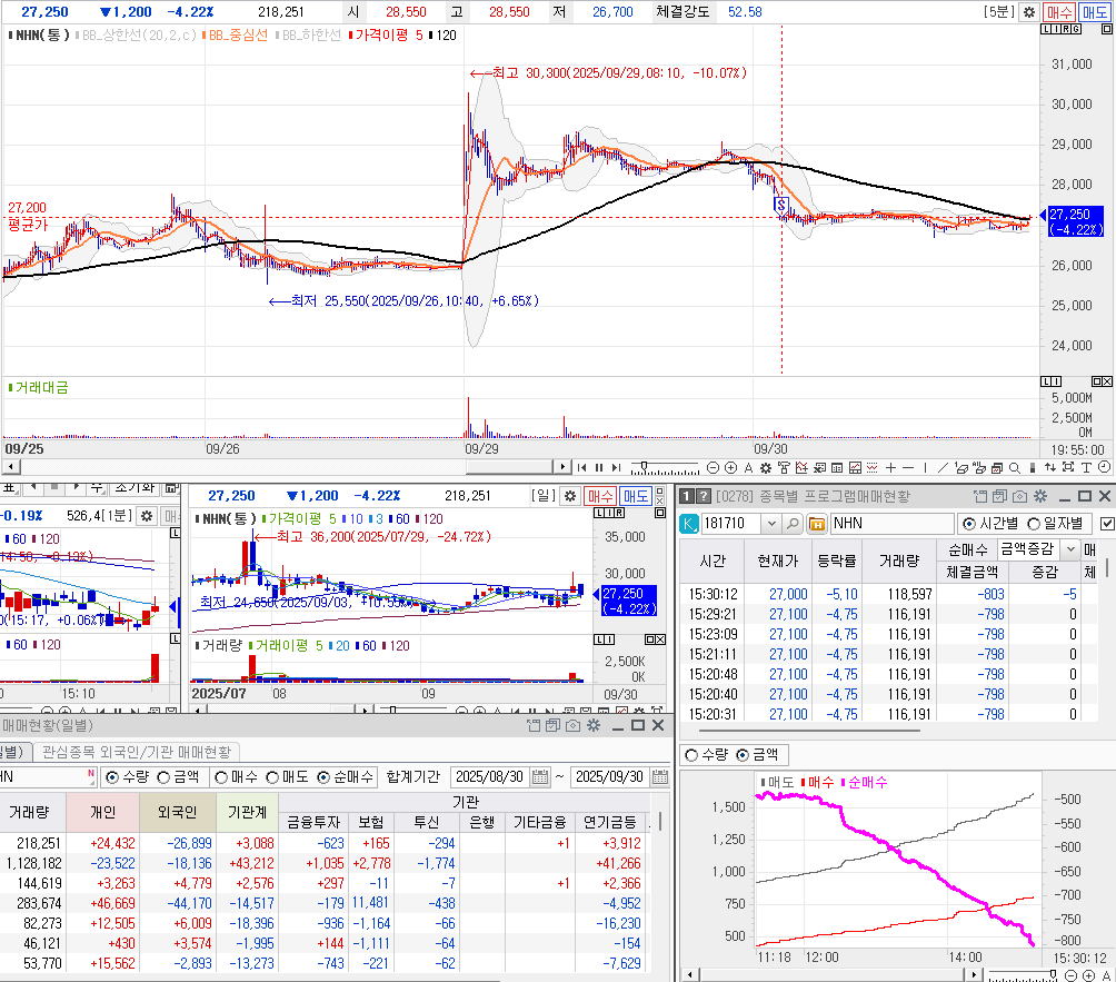 네이버 - 두나무 합병 소식에 두나무 투자종목으로 어제 급등을 하여, 오늘도 그 힘이 이어갈 것으로 보여서 오전장에 눌릴때 매수를 했는데, 힘없이 그냥 빠졌다.