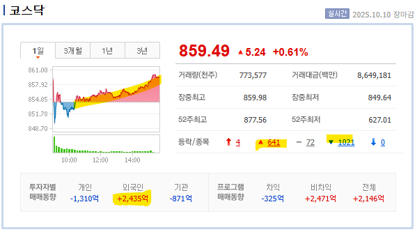 뿐만아니라, 오늘은 코스닥이 오후초반까지 완전히 밀렸었는데, 그나마 상승한 것이다.