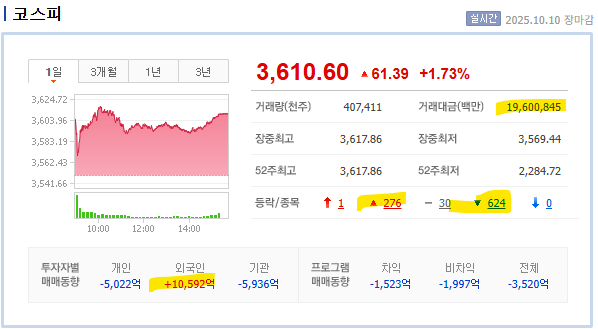 지수가 1.73%, 0.61%가 상승했는데, 상승 종목수가 훨씬 적다.. 이건 완전히 쏠렸다는 것이다.