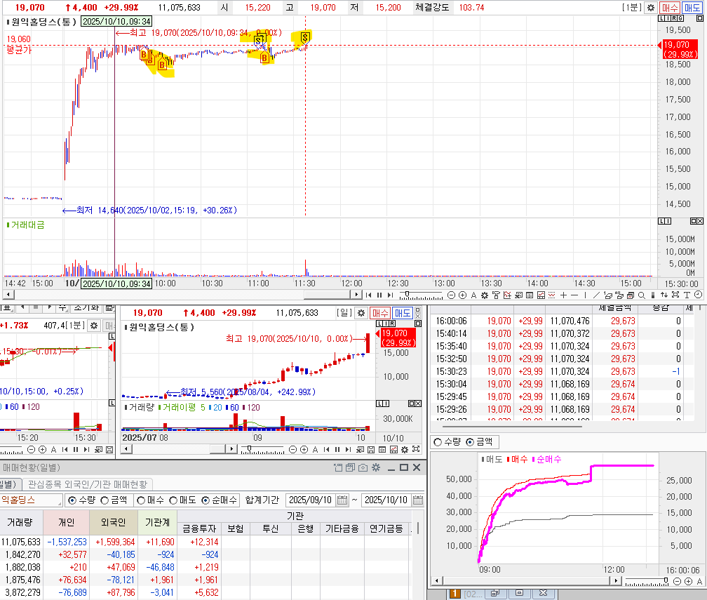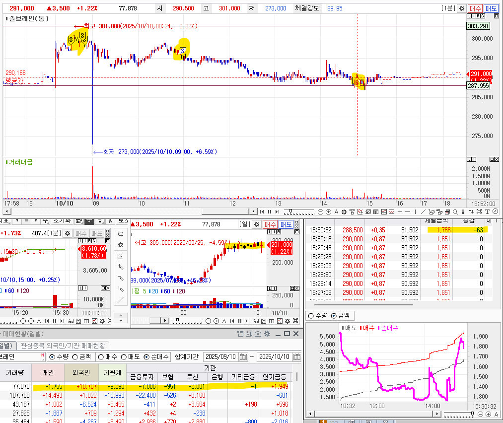 오전부터 프로그램이 지속적으로 들어오고, 외국인, 기관도 매수를 해주고 있어서 , 상따 개념으로 들어갔다.