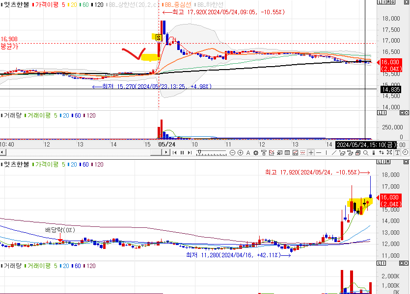 차트 : 눌림목이 나온형태, 하지만, 다시 올라오면서 상승지지형 형태로 변경됨