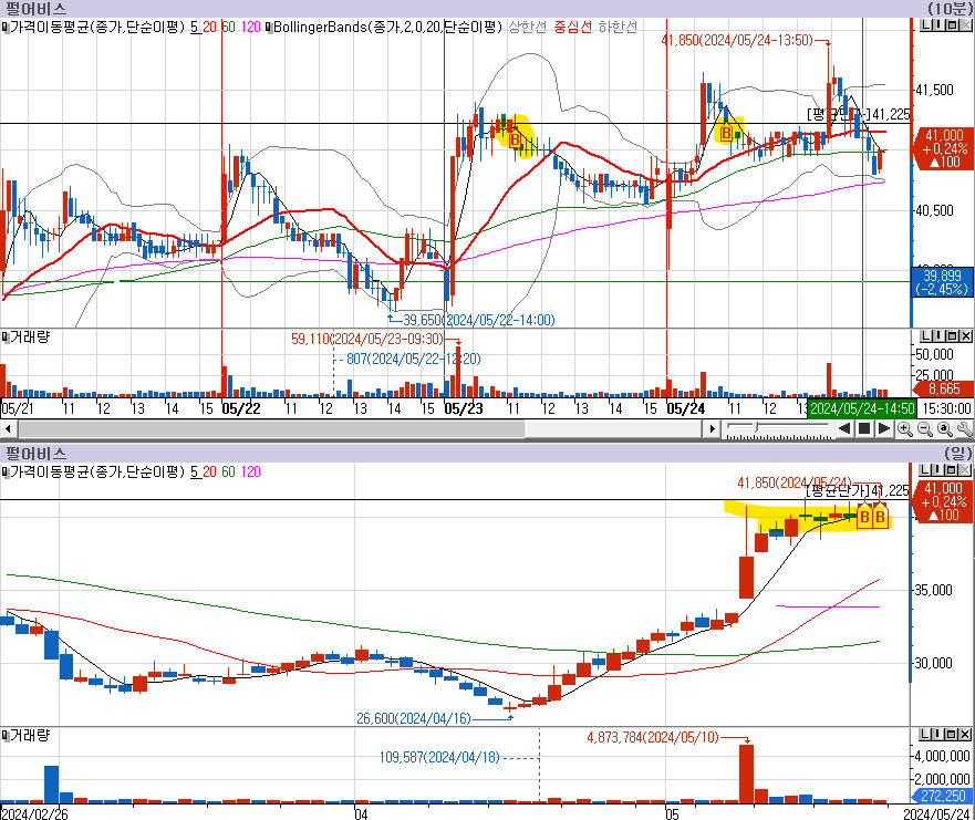 수급 : 전날에 10분매매시에 빠지지 않고, 외국인 물량 유입 (소량)