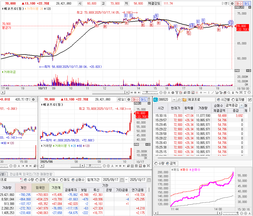 에코프로머티가 상승하지 못하고, 에코프로가 대장주로 밀고 올라가서, 지지라인에서 매수 후에 버텼다. 하지만.