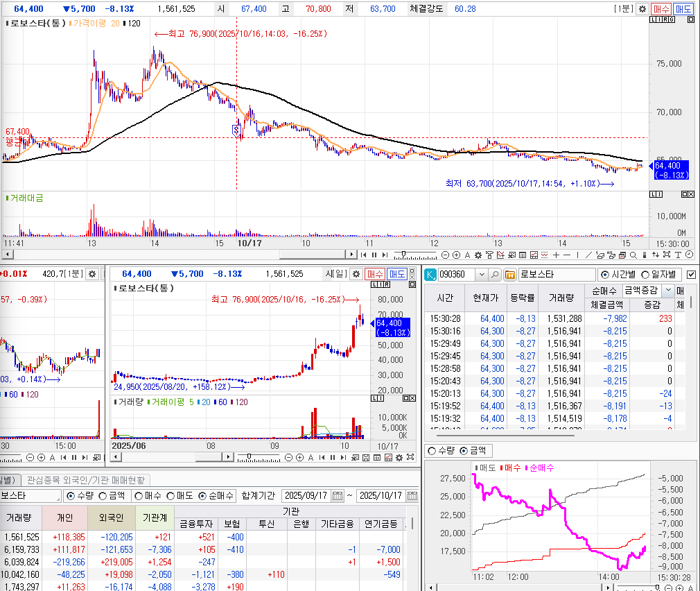 이것도 마찬가지로 오후 4시경에 급락을 하였고, 오늘 대장주라서 반등을 잘 해줄것으로 믿고, 매수... 약간의 수익을 가져갔다.