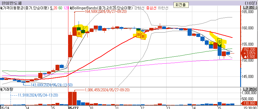완전히 말아먹었다. 미국 반도체주가 강세라는 것은 누구나 아는 상황인데, 이걸 그냥 먹어보겠다고 들어간 내가 미친놈이다. 가격을 올려놓고, 조금씩 가격을 밀어내린다. 결국 삼성전자의 hbm 수주 가능성이 전혀 없어진게 아니라는 풍문으로 하락으로 소절하게 되었다. 비중조절 실패로 많은 금액을 넣은게 더 않좋은 실수다.