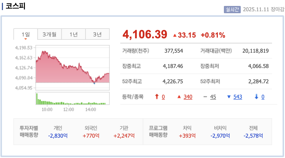 미국시장 - 완전 상승 반전함. 그래서 국장도 상승으로 출발.. 하지만, 제때 매도하지 못해서 손실이 커짐.