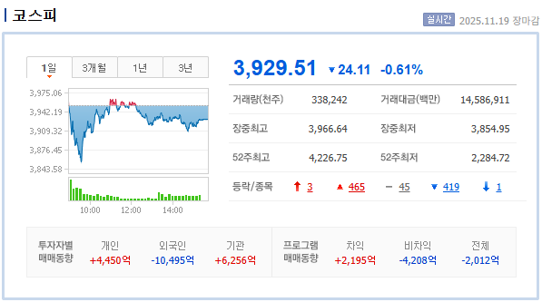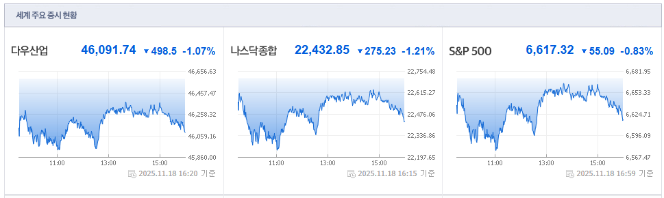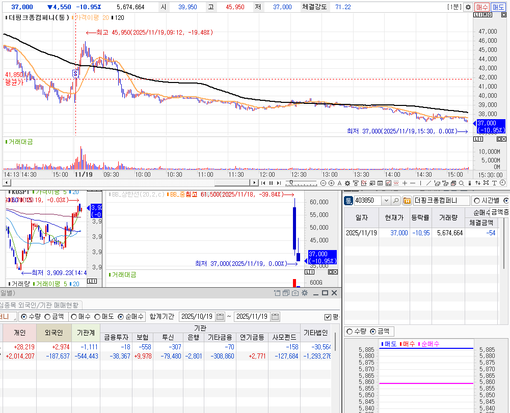 미국에서 마이크론과 센디스크의 큰 하락으로 오늘 시작하자마자 하락하더니, 계속 하락했다.