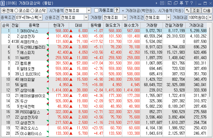 하지만, 내가 보유한 SK하이닉스는 급등각에서 계속 밀리더니, 하루종일 하락했다. 6% 상승으로 시작후 1%로 마감했다.