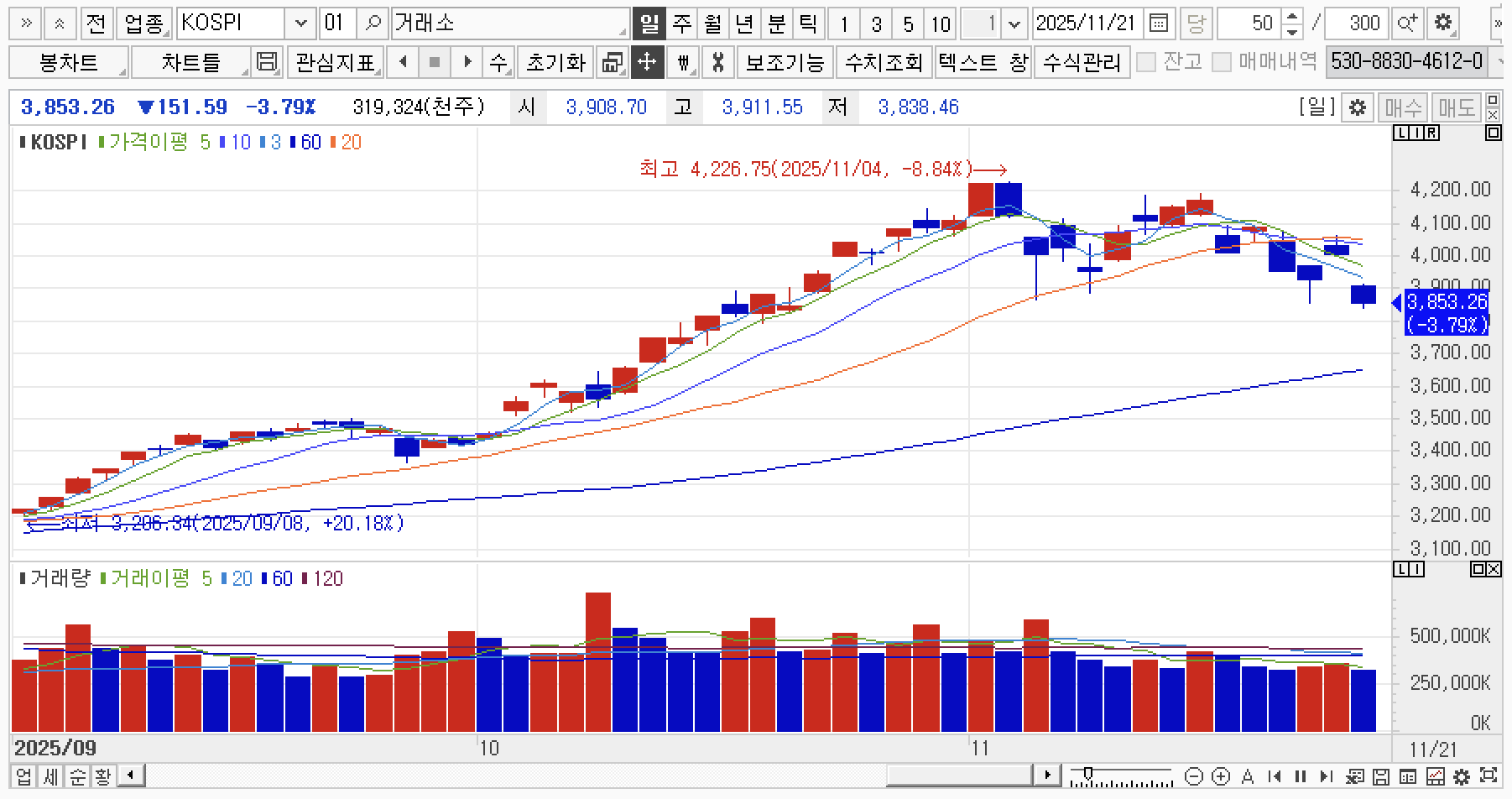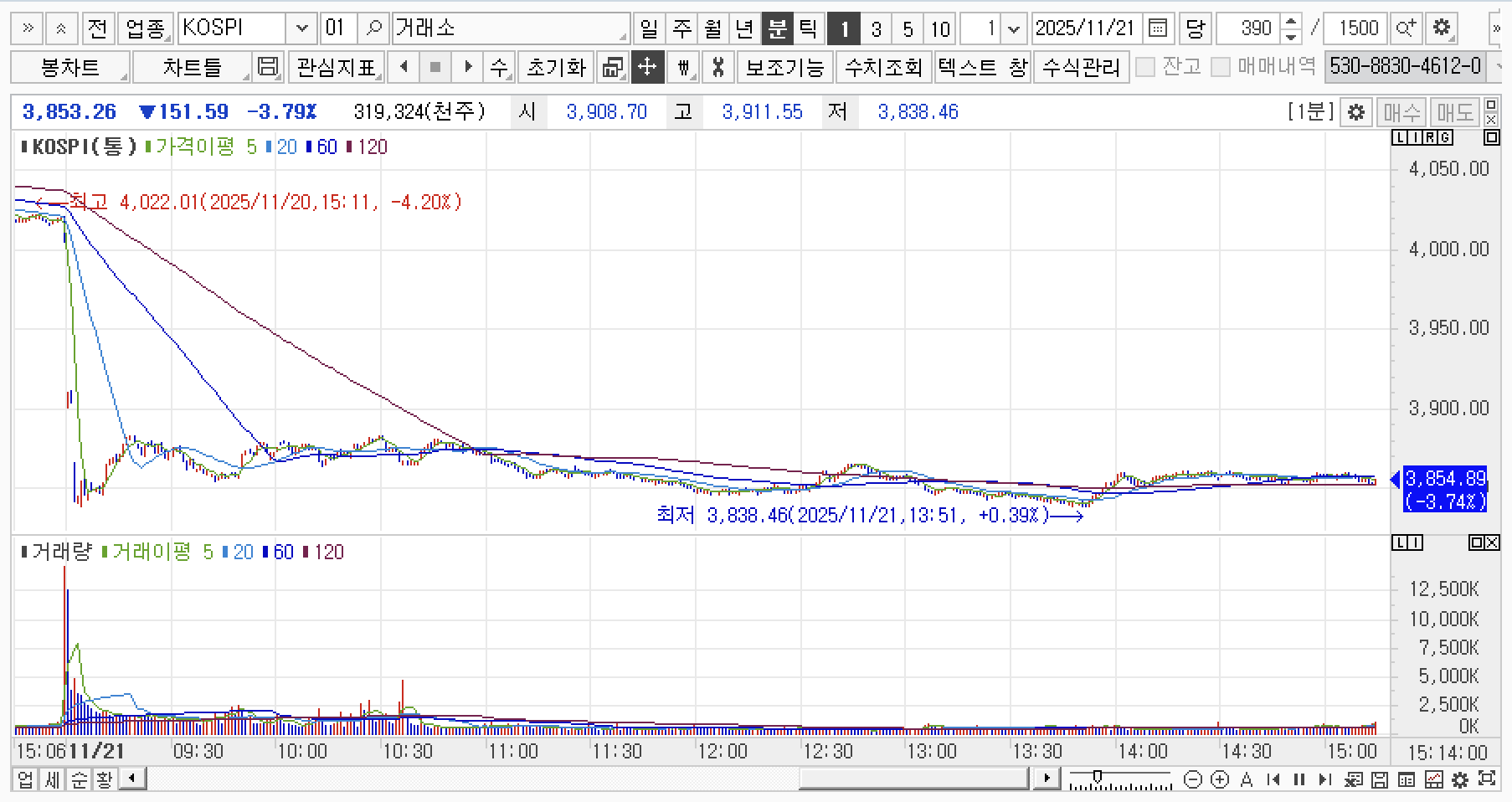 국내시장도 장초반부터 무너지는 모습으로 하락하였다.