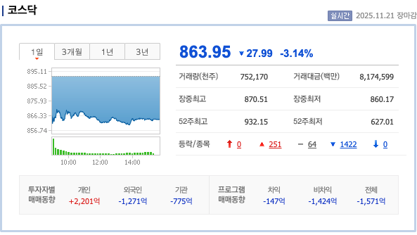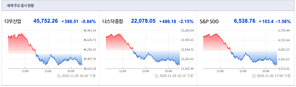 미국시장은 엔비디아 호실적에 대한 시장 분위기로 급등으로 출발하였지만, 후반으로 갈 수록 급락하는 장세를 보여줬다.
