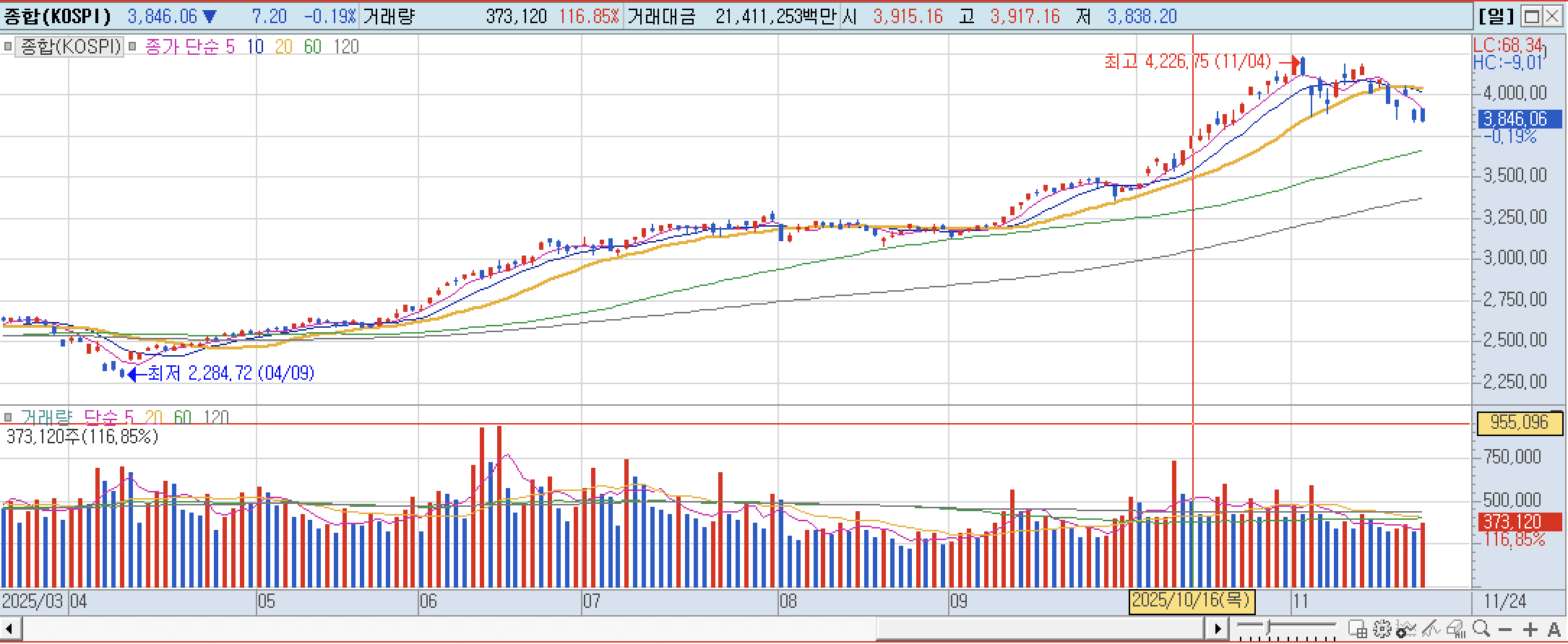 상승, 하락 종목수도 50% 정도 였는데, 밀리면서 35%정도만 상승으로 마감했다.