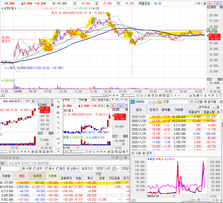 오늘 수익이 발생한 종목중에 한가지 이다. 전날에 많은 상승을 이뤘지만, 수급도 좋아서 수급을 믿고 매수를 진행했다.