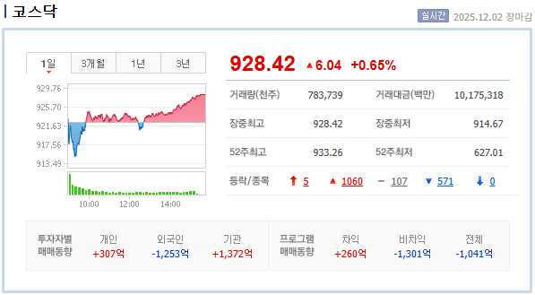 오전에 상승하는 모습을 보였다. 반도체가 초기 상승을 이끌고, 이후에 금융주들이 받쳐주면서 쭉~~ 상승하는 모습을 보이다가 12시쯤에 갑자기 하락을 했다. 원인은 정확히 모르겠다. 반도체가 빠지는 했지만, 그것 때문은 아닌 것 같다.