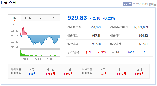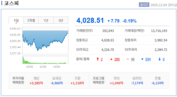 외국인은 코스피 - 매도, 코스닥 - 매수, 하지만, 하락종목이 엄청나게 많다. 거의 2배 정도 많다.