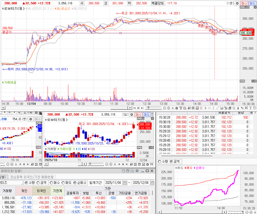여러 로봇중에서 수급이 몰리는 종목으로 파악하고 매수 / 매도했다. 장 후반부에 계속 하락하였지만, 이 정도 테마는 절대 그냥 죽지 않을 것으로 보고, 조금씩 매수, 매도하고... 일부 수익실현했다.