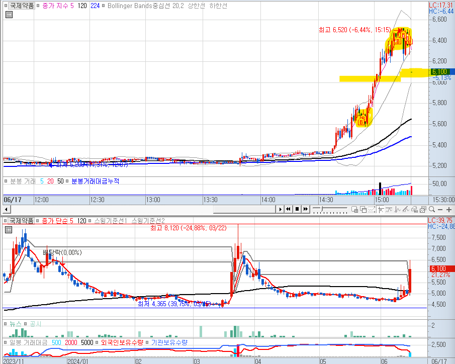 백일해 (감기?)에 대한 해열제를 가지고 있다고 하여, 거의 상한가까지 올라왔다.