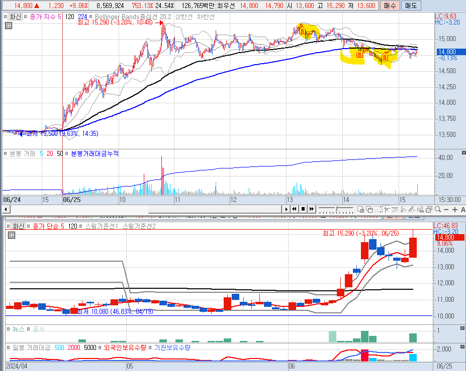 매수근거 : 외국인과 프로그램이 들어와서, 20분선에서 매수 진행